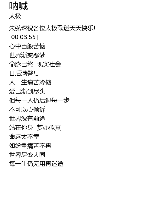 | [00:-0.50] | 朱弘琛祝各位太极歌迷天天快乐! |