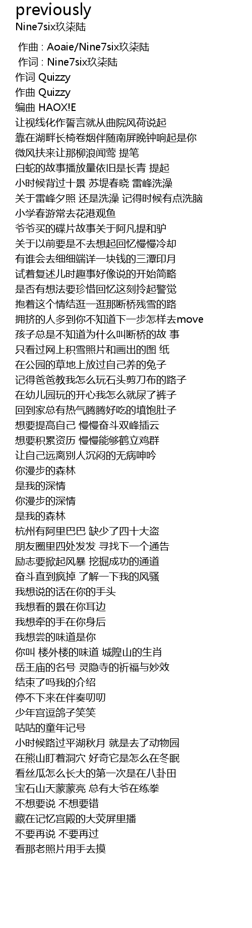 | [00:01.000] | zuo ci : Nine7six jiu qi lu |
