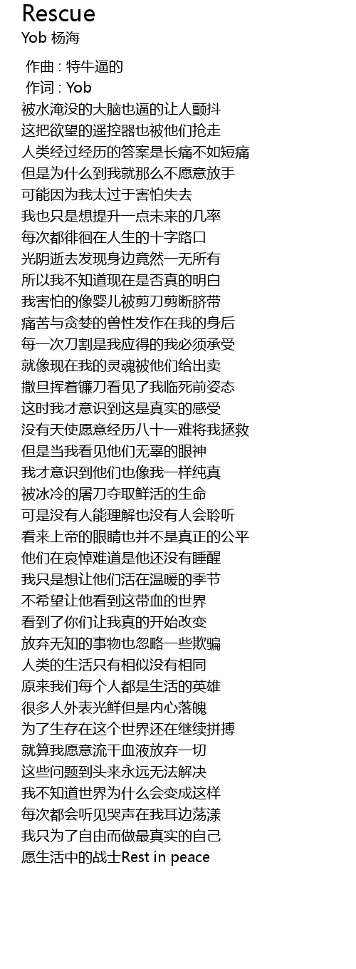 | [00:01.000] | 作词 : Yob |