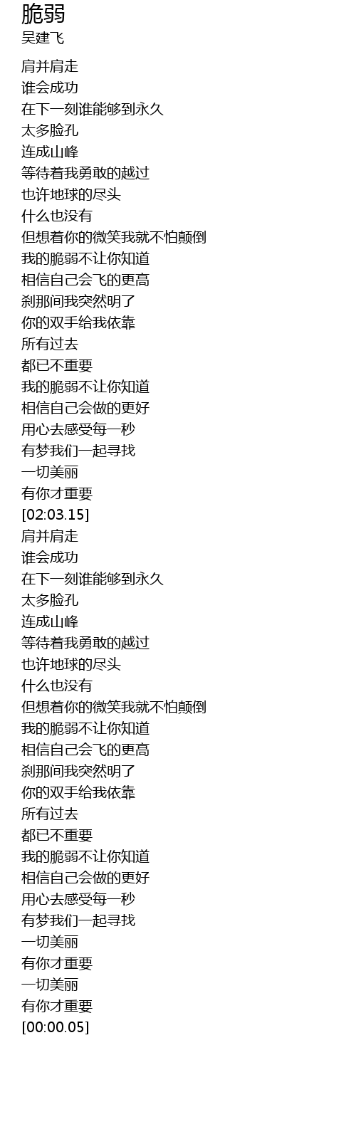 | [03:40.78] | wǒ de cuì ruò bù ràng nǐ zhī dào |