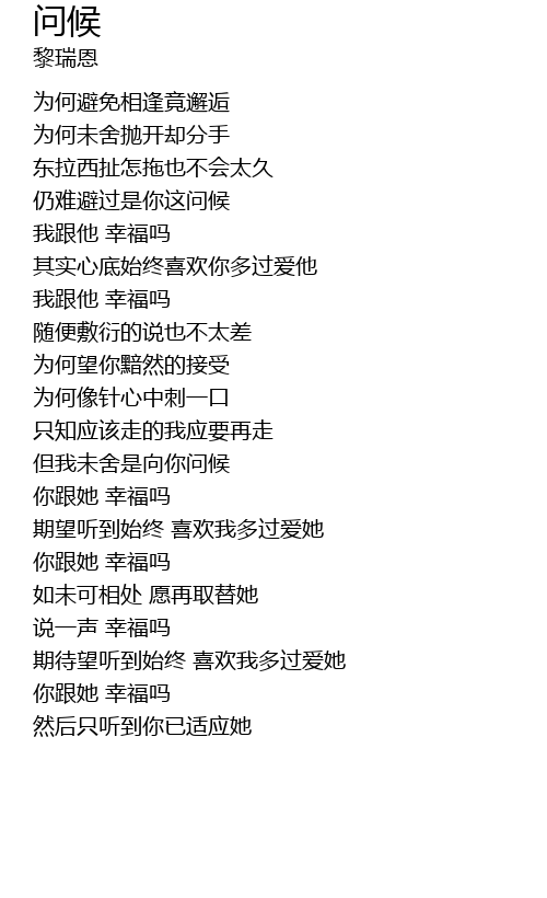 | [02:08.51] | dàn wǒ wèi shě shì xiàng nǐ wèn hòu |
