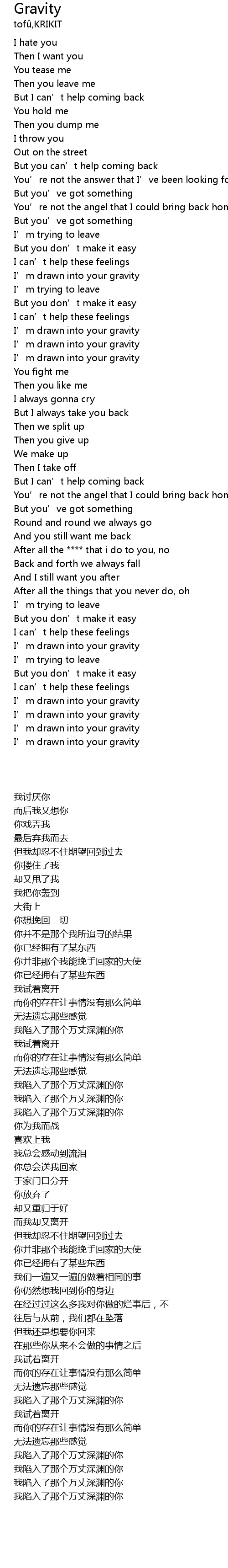 | [00:00.00] | I hate you |