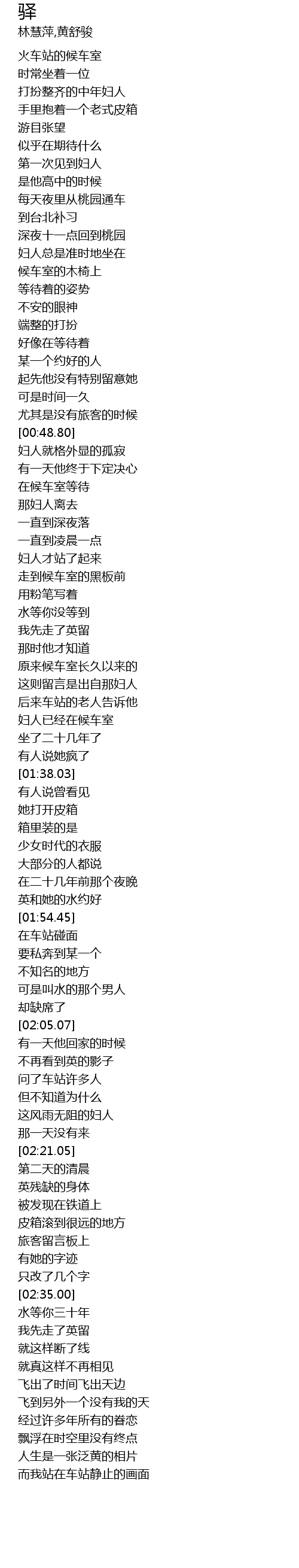 | [03:32.40] | er wo zhan zai che zhan jing zhi de hua mian |