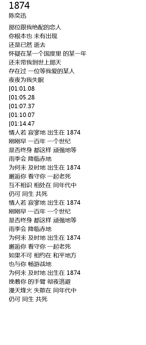 | [01:40.21] | 为何未 及时地 出生在 1874 |