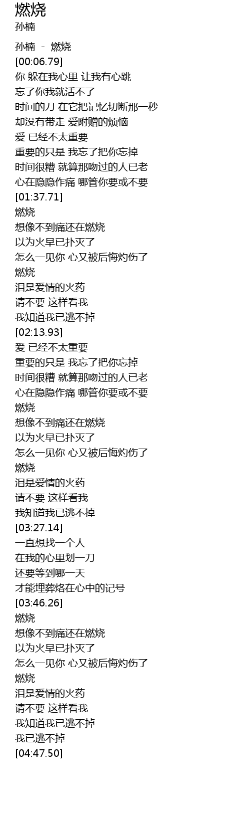 | [04:04.98] | xiang xiang bu dao tong hai zai ran shao |