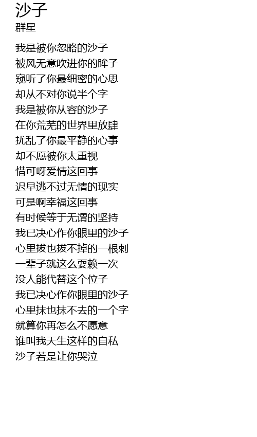 | wǒ yǐ jué xīn zuò nǐ yǎn lǐ de shā zi | |