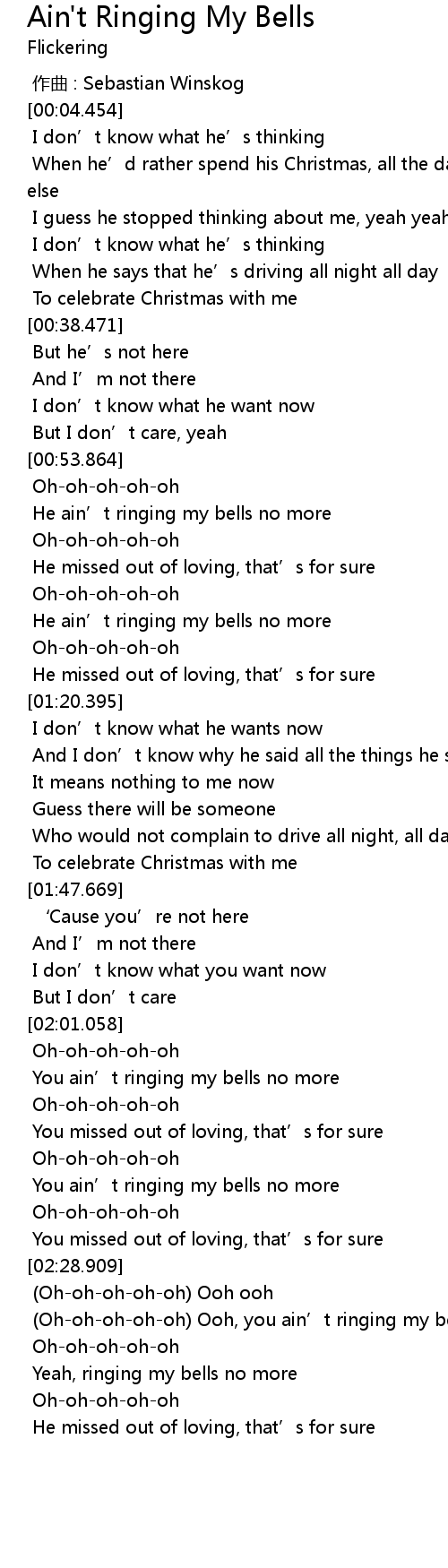 | [02:35.987] | Ohohohohoh Ooh, you ain' t ringing my bells, no |