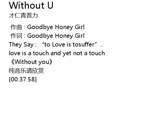 | [00:01.000] | zuo ci : Goodbye Honey Girl |