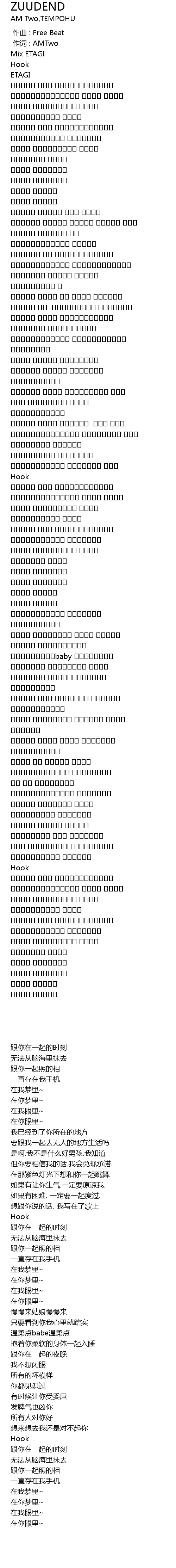 | [00:01.000] | zuò cí : AMTwo |