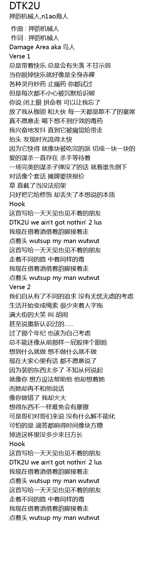 | [02:55.244] | DTK2U we ain' t got nothin' 2 lus |