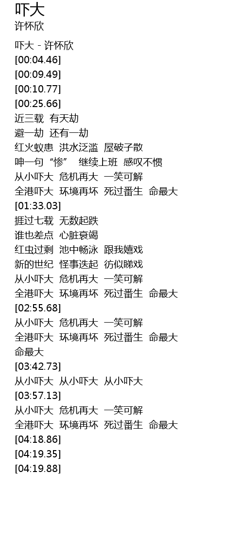 | [03:57.36] | 从小吓大 危机再大 一笑可解 |
