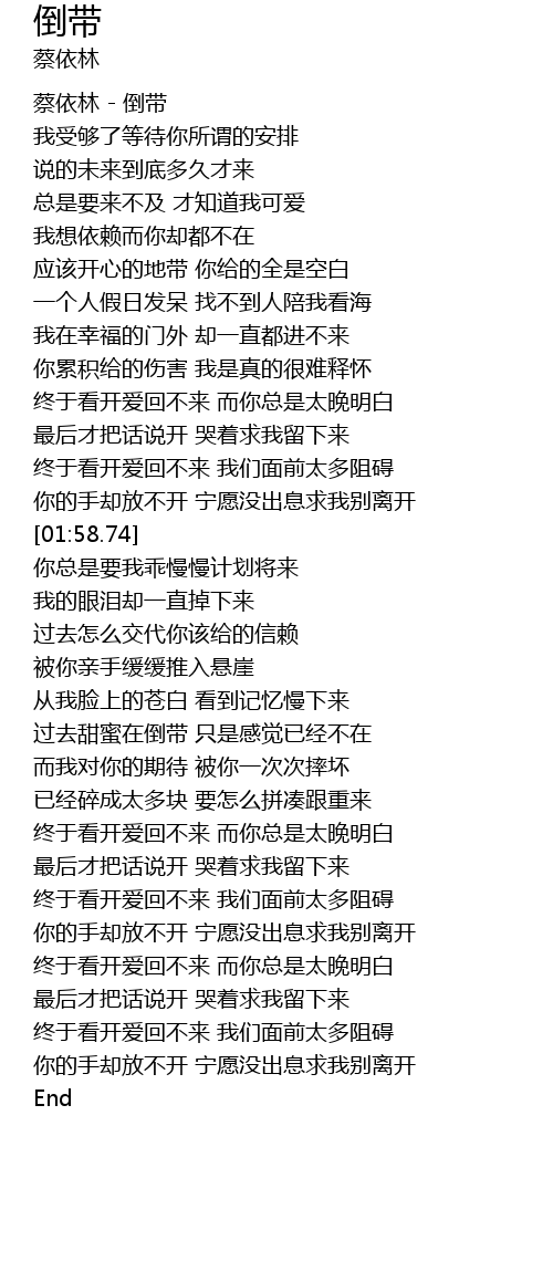 | [00:04.61] | 蔡依林 - 倒带 |