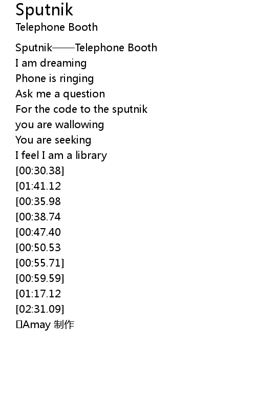 | [00:01.57] | Sputnik——Telephone Booth |