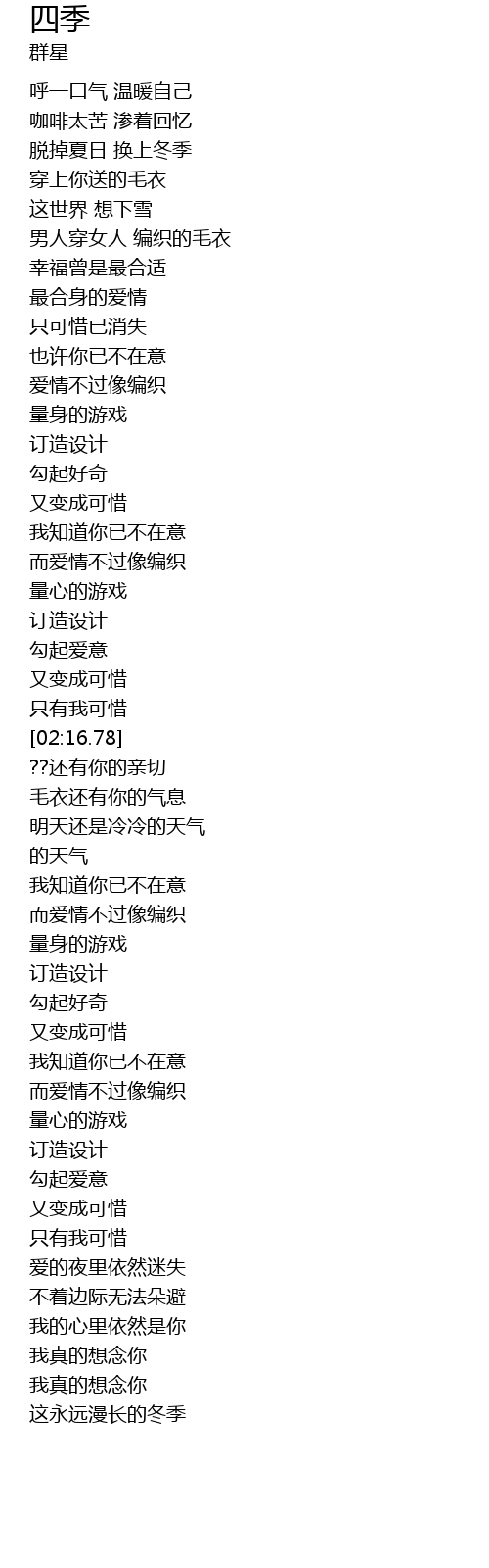 | [02:42.82] | 毛衣还有你的气息 |