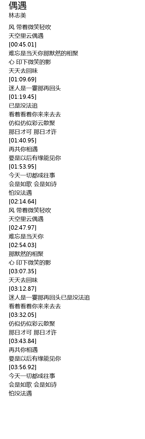 | [00:46.15] | 难忘是当天你那默然的相聚 |