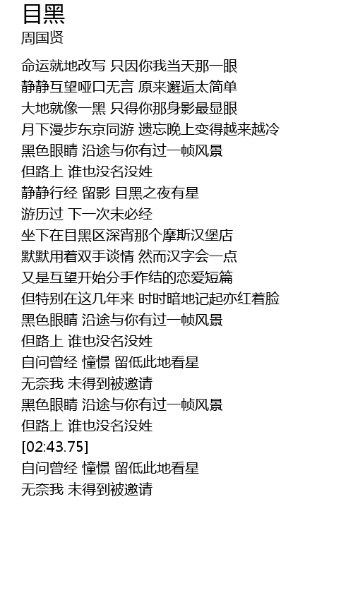 [01:42.70] 黑色眼睛 沿途与你有过一帧风景
