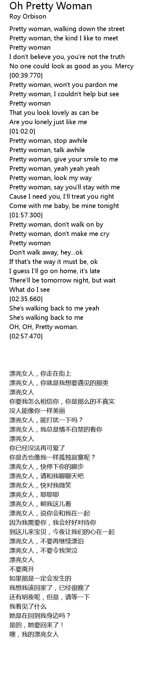Pretty woman, yeah yeah yeah |
