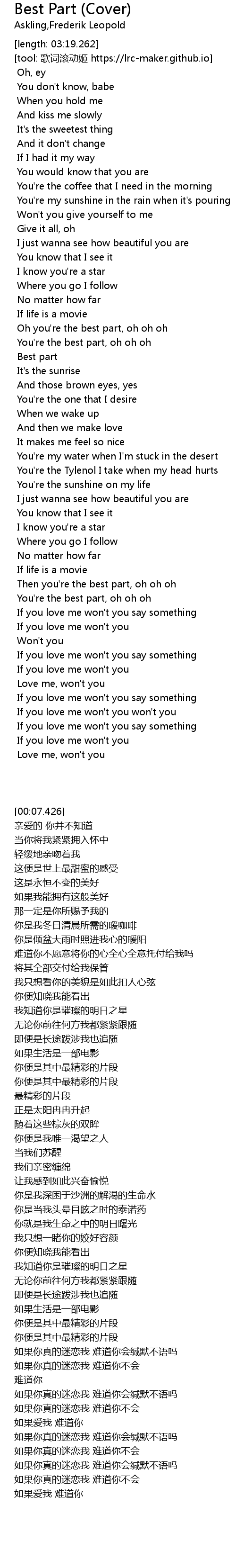 | [02:39.339] | You're the best part, oh oh oh |