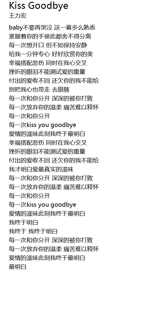 | [01:38.789] | 每一次kiss you goodbye |
