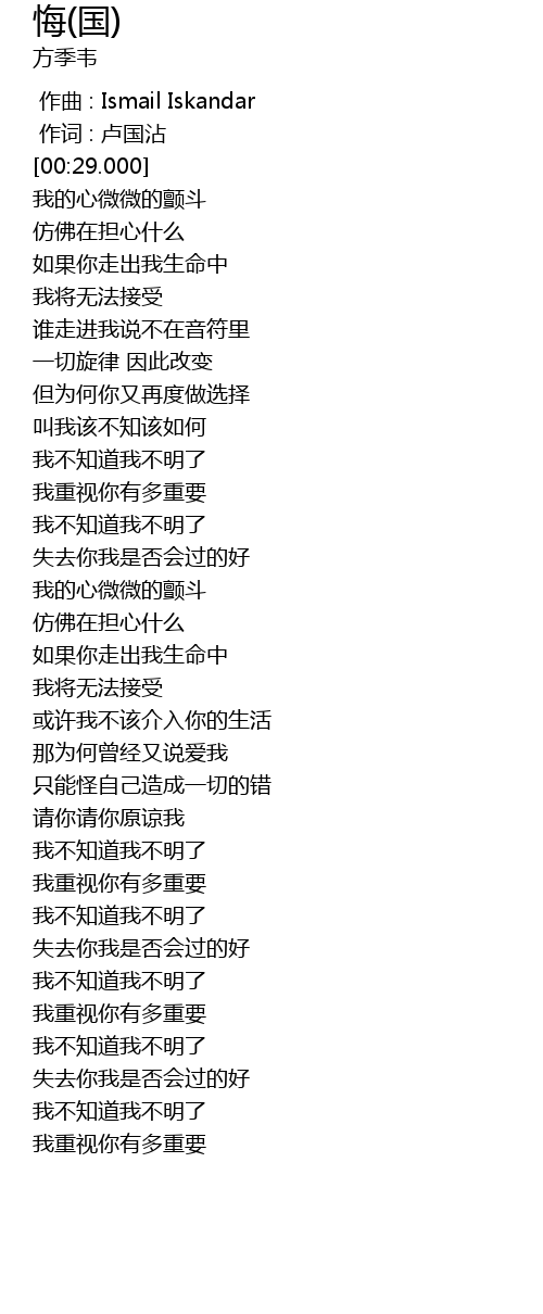 | [02:54.310] | 只能怪自己造成一切的错 |