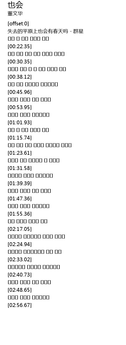 | [00:00.41] | 失去的平原上也会有春天吗 - 群星 |