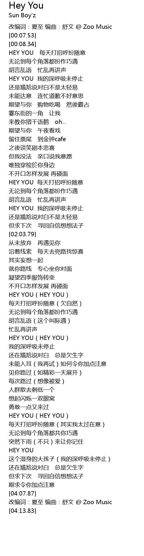 | [04:11.90] | gǎi biān cí: xià zhì biān qǔ: shū wén Zoo Music |