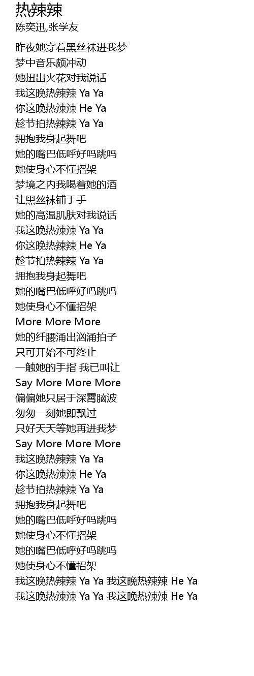 | [03:01.908] | 我这晚热辣辣 Ya Ya 我这晚热辣辣 He Ya |