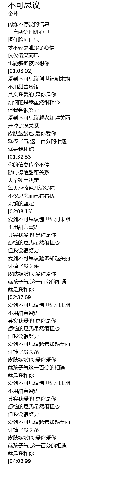 | [03:47.83] | 爱到不可思议越老却越美丽 |