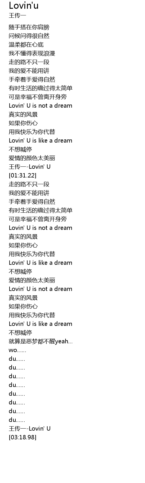 | [03:13.61] | wáng chuán yī Lovin' U |