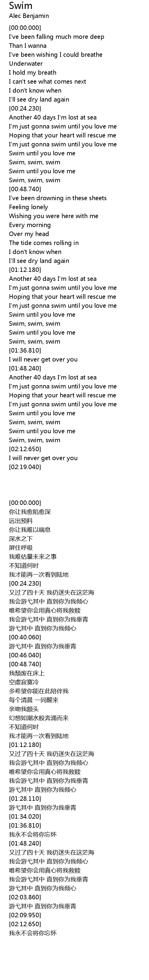 Swim until you love me |