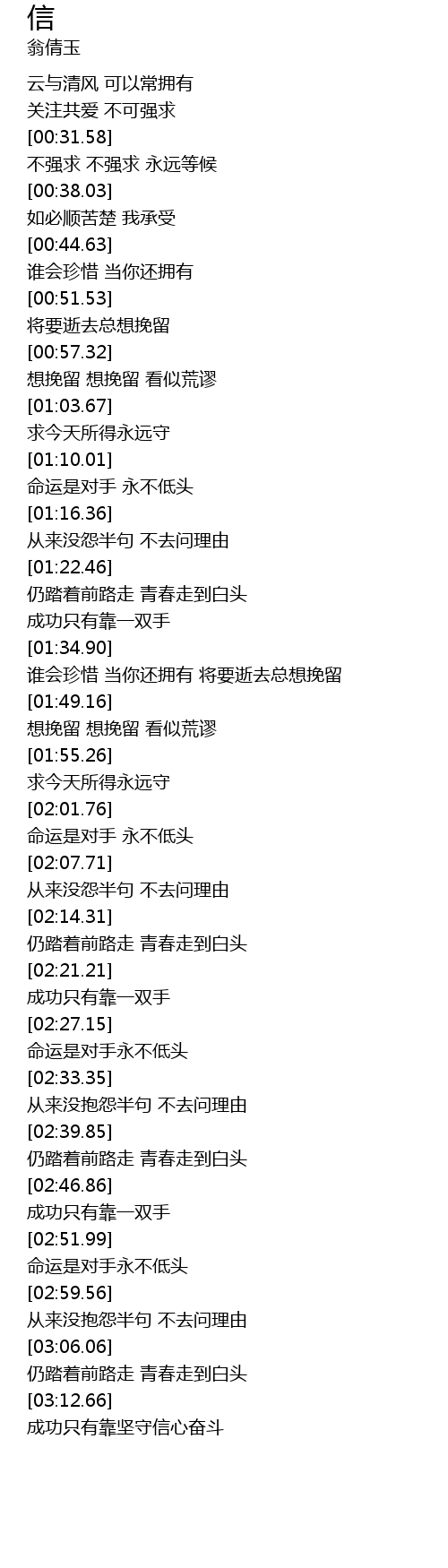 | [03:13.43] | 成功只有靠坚守信心奋斗 |