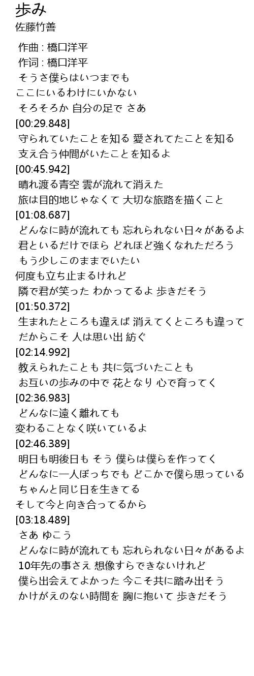 | [02:26.110] | お互いの歩みの中で 花となり 心で育ってく |
