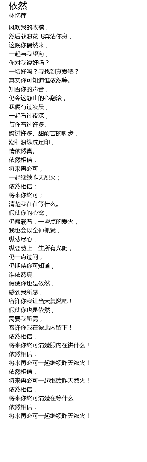 | [03:06.960] | jiǎ shǐ nǐ yě shì yī rán, |