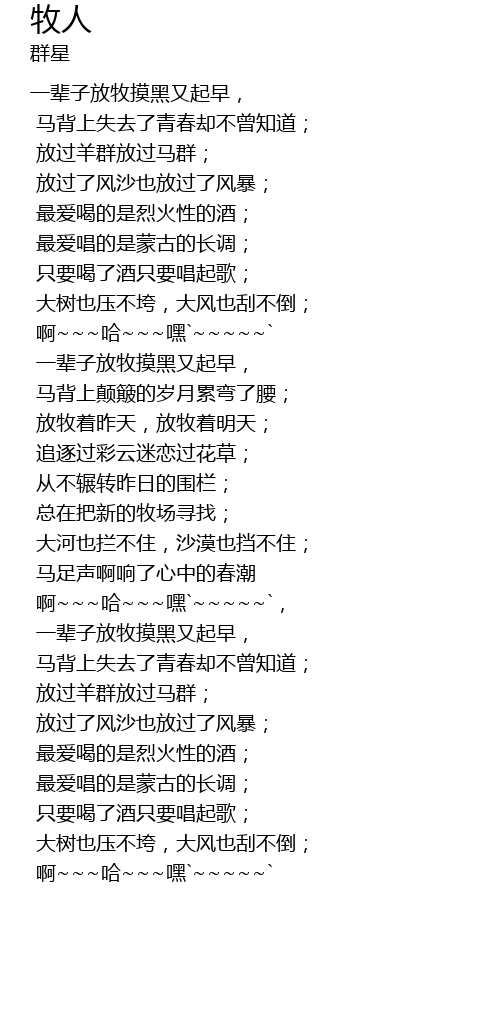 | [03:48.610] | 最爱唱的是蒙古的长调; |