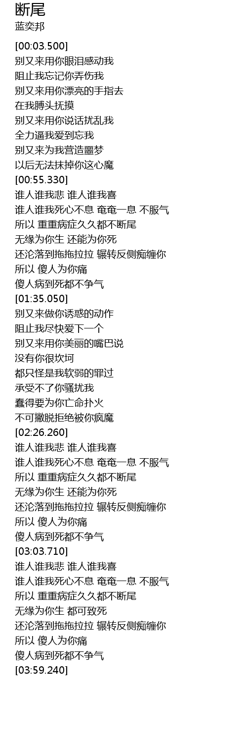 | [03:33.740] | 所以 重重病症久久都不断尾 |