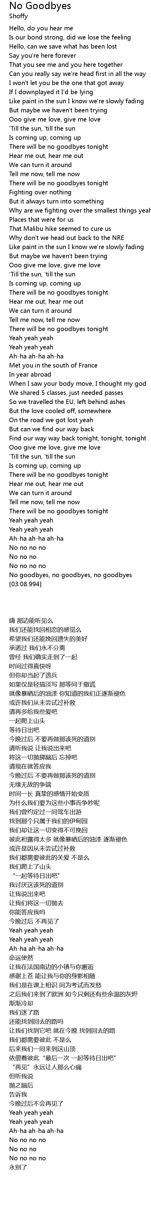 No goodbyes, no goodbyes, no goodbyes |