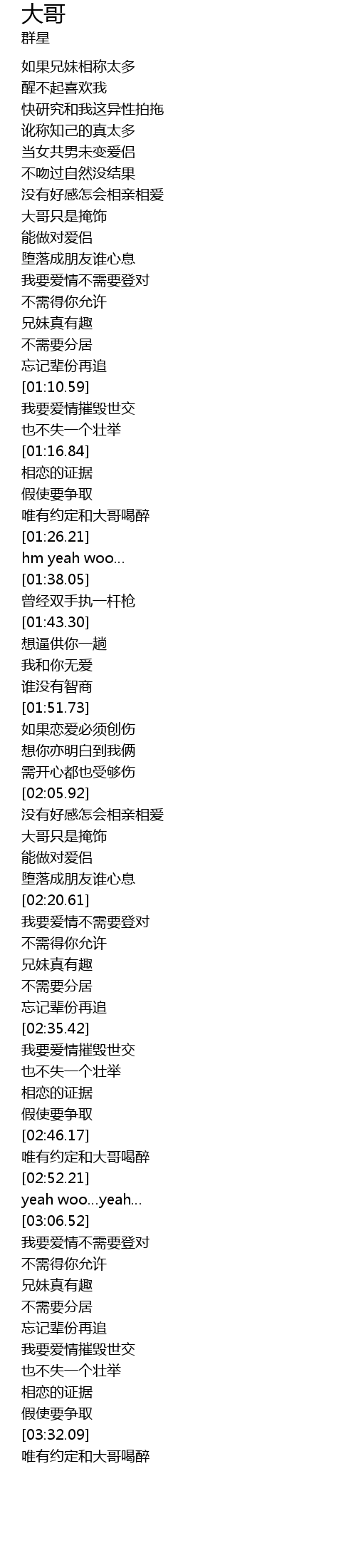| [03:32.79] | wéi yǒu yuē dìng hé dà gē hē zuì |