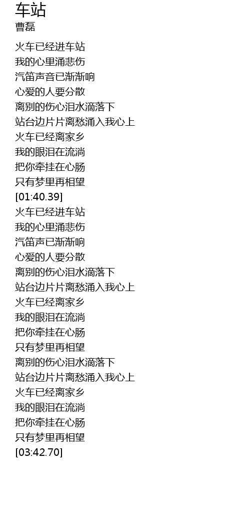 | [03:12.25] | 站台边片片离愁涌入我心上 |