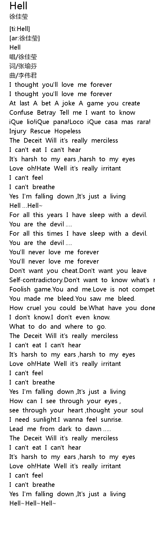 | [00:42.812] | Confuse Betray Tell me I want to know |