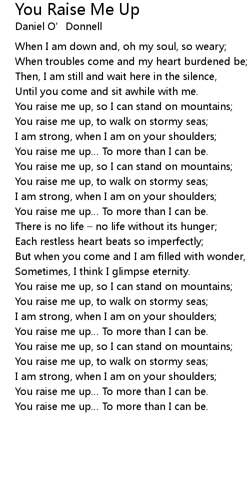 | You raise me up To more than I can be. | |