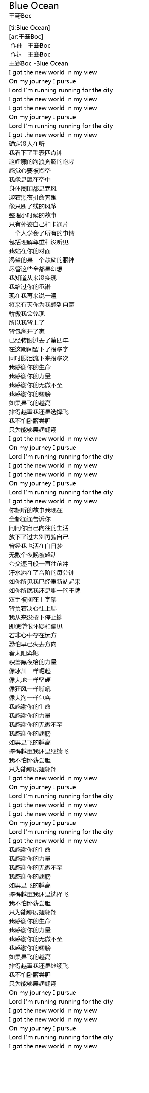 | [00:00.00] | wáng qiān Boc Blue Ocean |