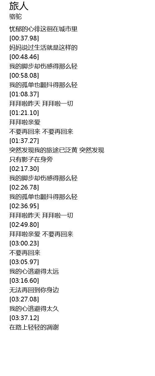 | [00:53.34] | 我的脚步却伤感得那么轻 |