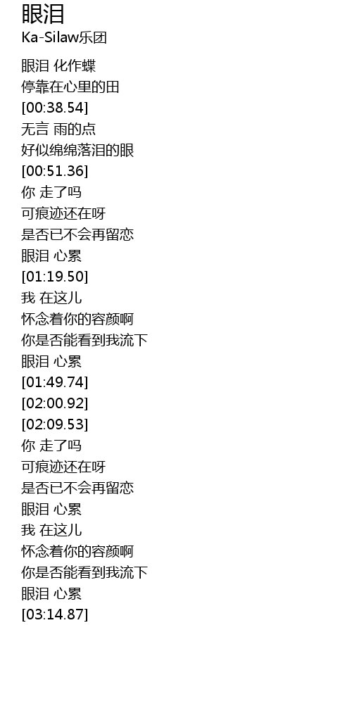 | [01:43.18] | yǎn lèi xīn lèi |