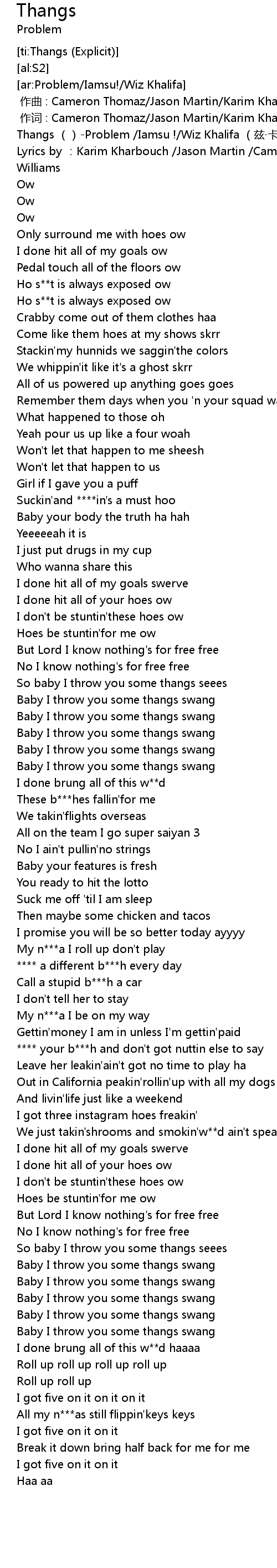 | [00:00.00] | Thangs Problem Iamsu ! Wiz Khalifa zi ka li fa |