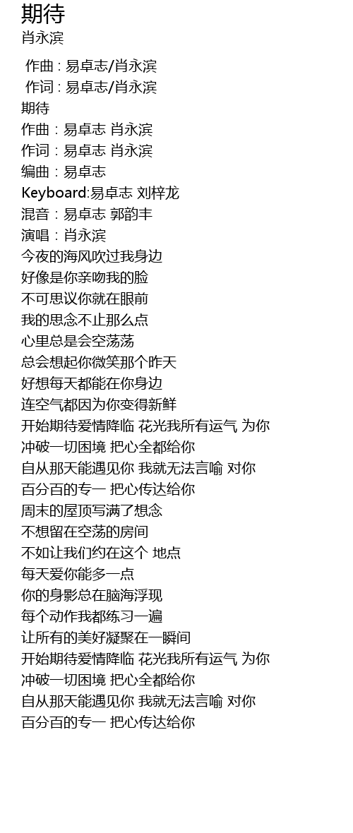 | [00:07.656] | 作词:易卓志 肖永滨 |