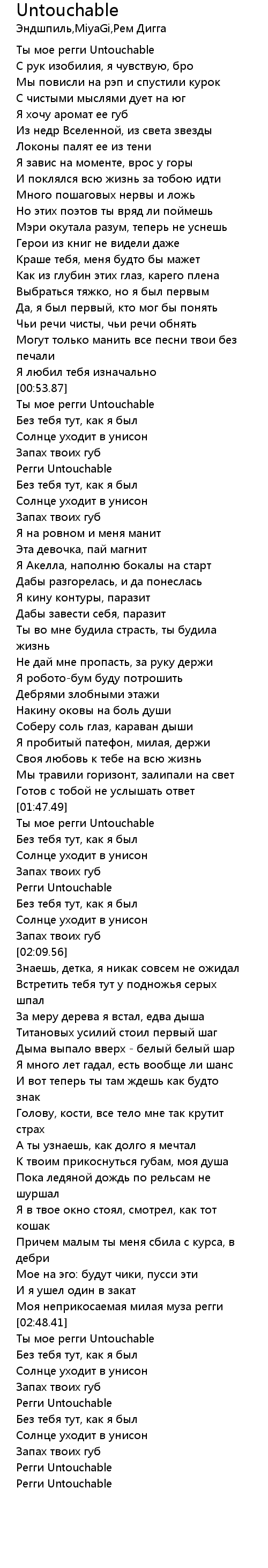 Ты мое регги Untouchable |