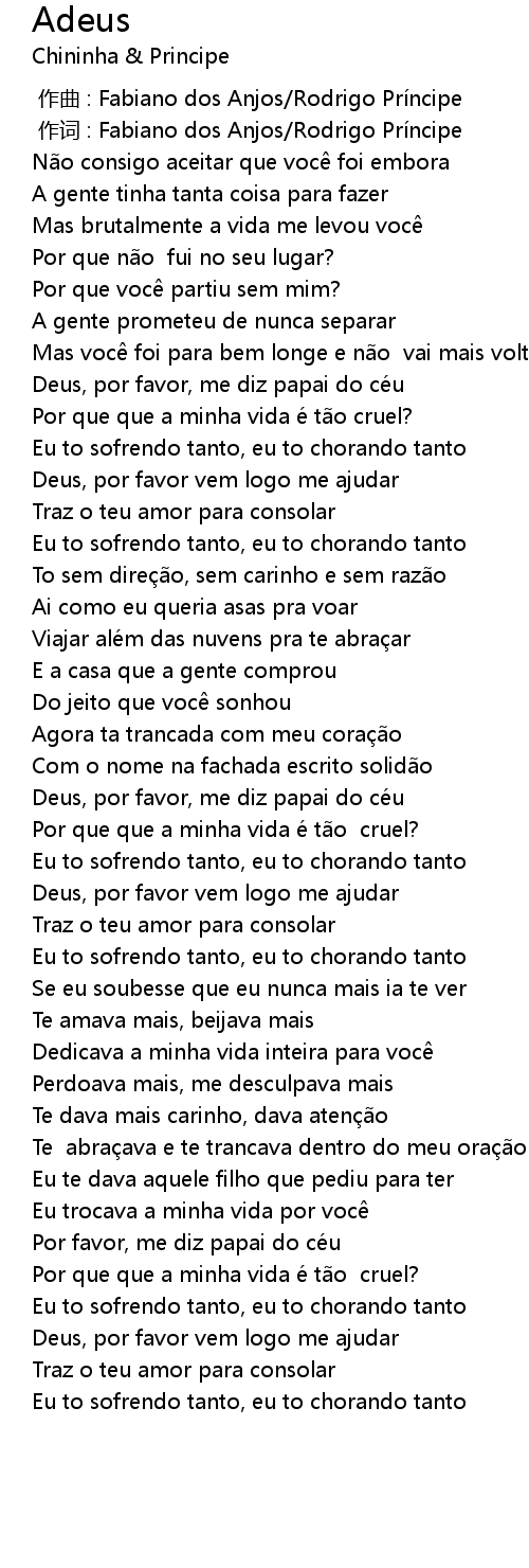 | [02:23.22] | Deus, por favor, me diz papai do ce u |