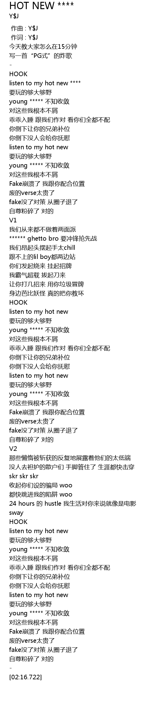 | [00:05.801] | 写一首“PG式”的炸歌 |