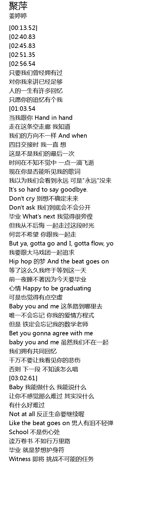 | [03:39.11][02:45.83][01:52.50][00:27.17] | zhì shǎo wǒ men céng jīng xiāng jù guò |