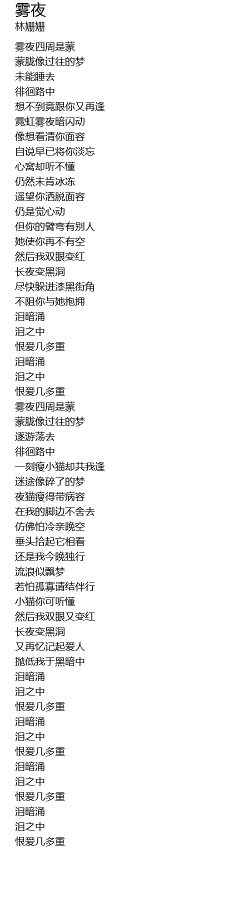 | [00:31.020] | 雾夜四周是蒙 |